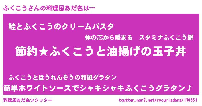 | ヘコむあだ名 | 『ふくもー』『ふくを』『つくし』 |
