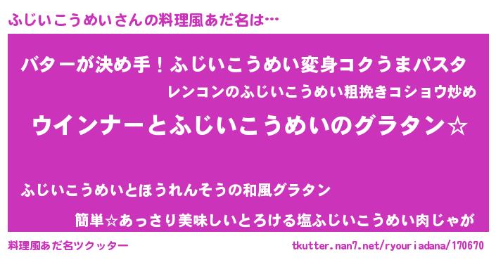 | ヘコむあだ名 | 『なまこ酢』『ふじいこうめい(笑)』 |