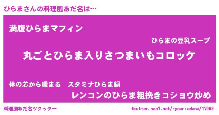 | ヘコむあだ名 | 『ひらま(震え声)』『ひらを』 |