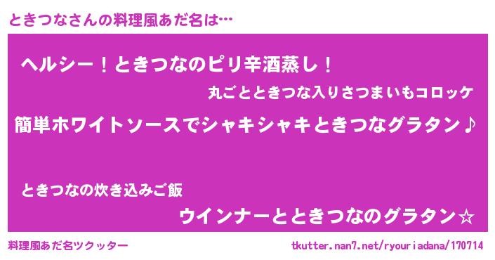 | 女子向けラノベタイトル風あだ名 | 『ときつな様がみてる』 |
