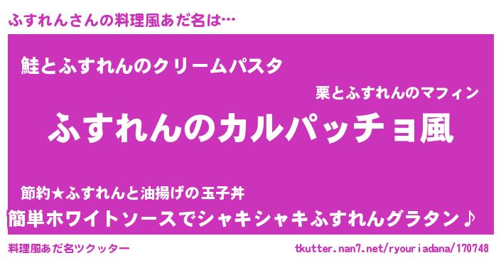 | 男性向けラノベタイトル風あだ名 | 『魔弾の王とふすれん』『ふすれんの憂鬱』 |