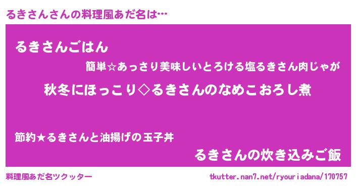 | ヘコむあだ名 | 『るきさん(小並感)』『るきっふぃ~』 |