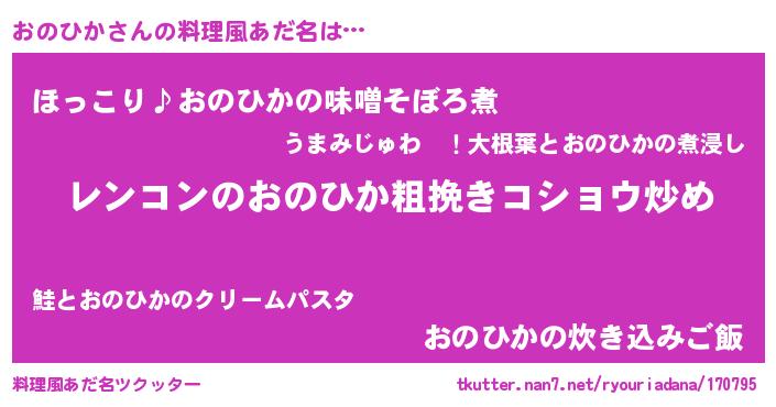 | ヘコむあだ名 | 『おのふぇ~』『つくし』『おの太郎』 |