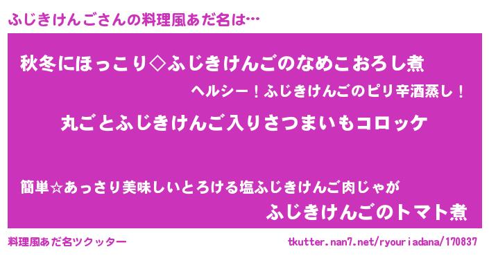 | 意味不明あだ名 | 『住所不定無職ふじきけんご(62歳)』 |