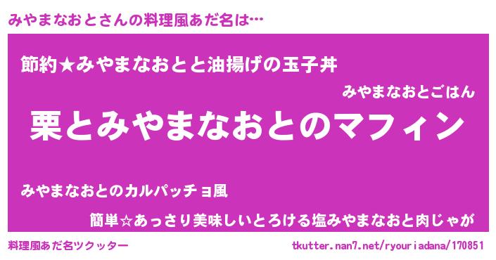 | ヘコむあだ名 | 『みやっふぃ~』『みやまなおと(震え声)』 |