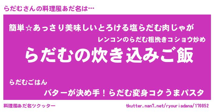 | 男性向けラノベタイトル風あだ名 | 『うちのらだむが世界を掌握している!』 |