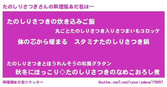 | 意味不明あだ名 | 『たのしりさつきフォーエバー』 |