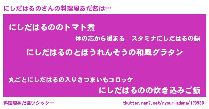 | 女子向けラノベタイトル風あだ名 | 『にしだはるのの玉の輿計画!』 |