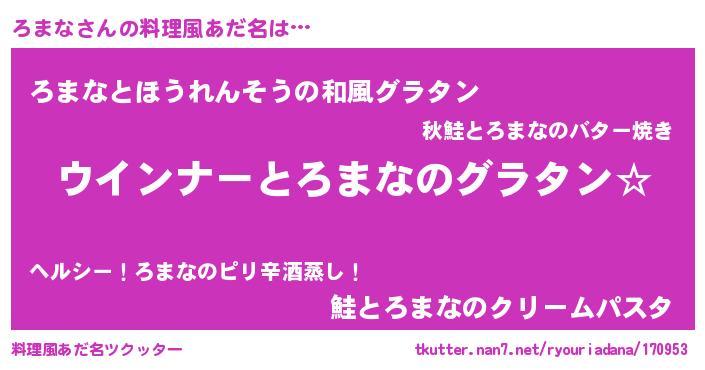 | ヒーロー風カッコイイあだ名 | 『ウルトラろまなマン』『愛の使者ろまな』 |