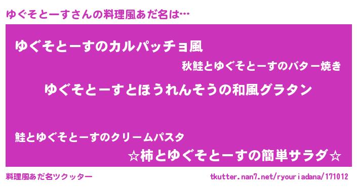 | 欧米人風あだ名 | 『トリンドルゆぐそとーす』 |
