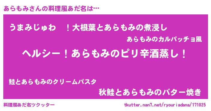 | 男性向けラノベタイトル風あだ名 | 『Re:あらもみから始める異世界生活』 |