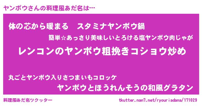 | 胡散臭い通販商品みたいなあだ名 | 『ガンによく効く冬虫夏草…その名も「ヤンボウ」』 |