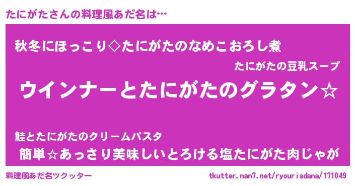 | 意味不明あだ名 | 『たにがたフォーエバー』 |