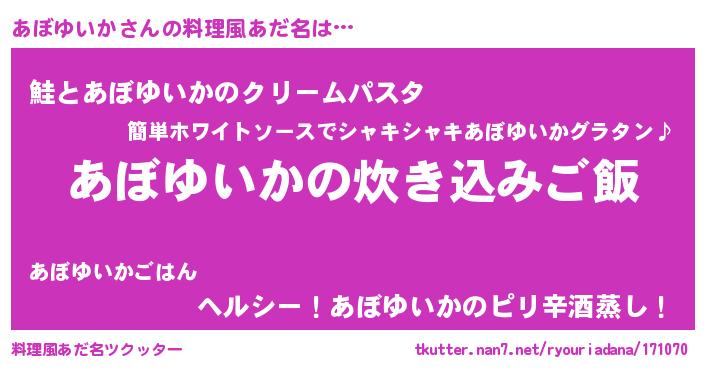 | 男性向けラノベタイトル風あだ名 | 『うちのあぼゆいかが世界を掌握している!』 |