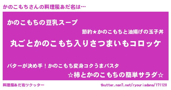 | 意味不明あだ名 | 『住所不定無職かのこもち(98歳)』 |