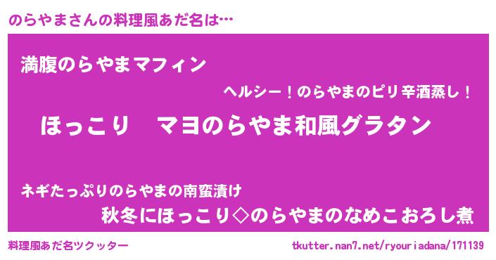 | 男性向けラノベタイトル風あだ名 | 『この素晴らしい世界にのらやまを!』 |
