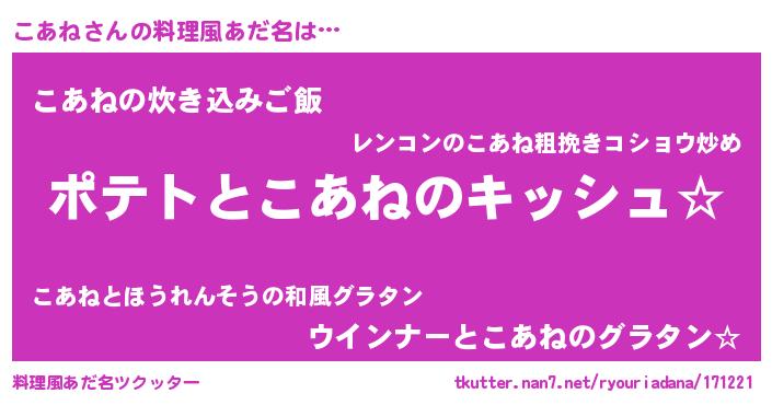 | 欧米人風あだ名 | 『ウサインこあね』『こあねクリステル』 |