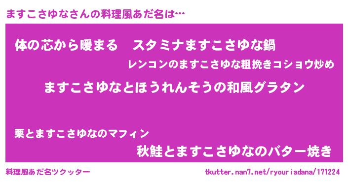 | 女子向けラノベタイトル風あだ名 | 『ますこさゆなの玉の輿計画!』 |