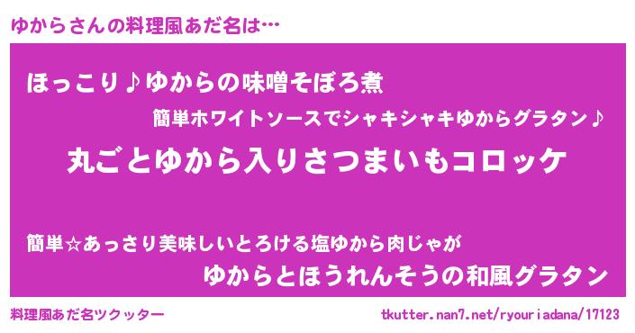 | 男性向けラノベタイトル風あだ名 | 『この素晴らしい世界にゆからを!』 |