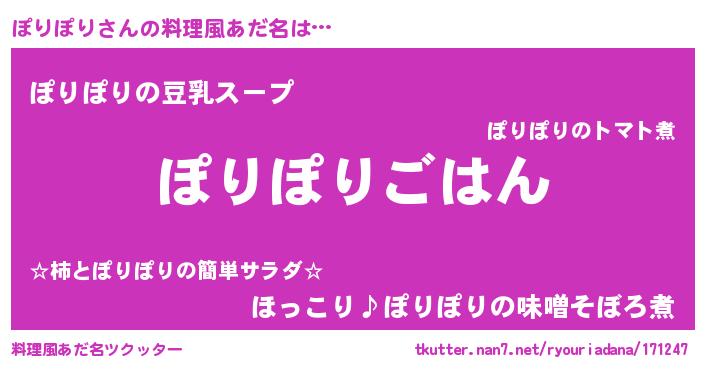 | 男性向けラノベタイトル風あだ名 | 『転生したらぽりぽりだった件』 |