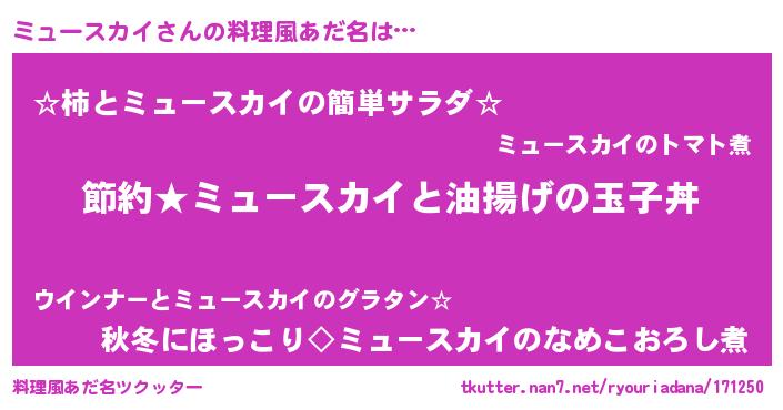 | 男性向けラノベタイトル風あだ名 | 『ミュースカイアートオンライン』 |