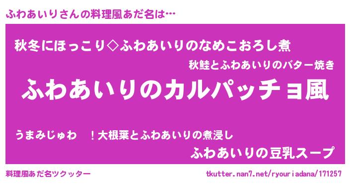 | 意味不明あだ名 | 『住所不定無職ふわあいり(59歳)』 |