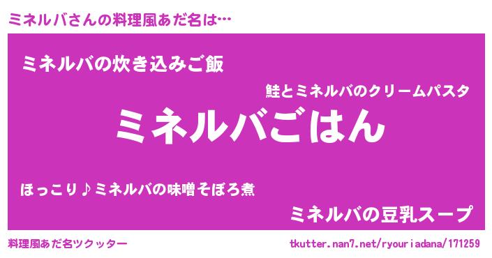 | 男性向けラノベタイトル風あだ名 | 『ミネルバスレイヤー』『ミネルバの憂鬱』 |