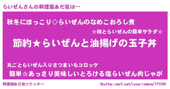 | 恥ずかしいあだ名 | 『プリティーらいぜん』『らいちん』 |