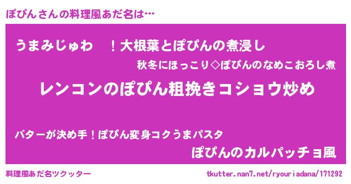 女子向けラノベタイトル風あだ名 | 『ぽぴんなんてお断りですっ。』 |