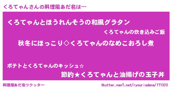 | 男性向けラノベタイトル風あだ名 | 『くろてゃんに滅ぼされるだけの簡単なお仕事です』 |