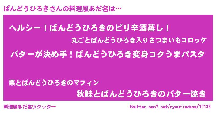 | ヘコむあだ名 | 『ばんどうひろき(苦笑)』『なまこ酢』 |
