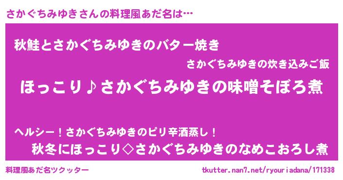 | ヘコむあだ名 | 『さかにゅー』『さかぐちみゆき(震え声)』 |
