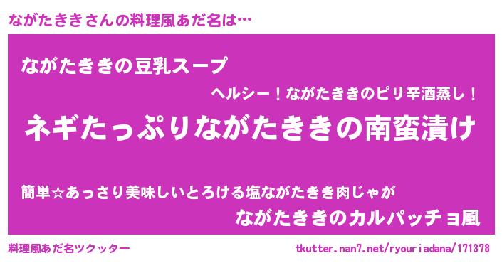 | 胡散臭い通販商品みたいなあだ名 | 『億万長者になれるブレスレット…その名も「ながたきき」』 |
