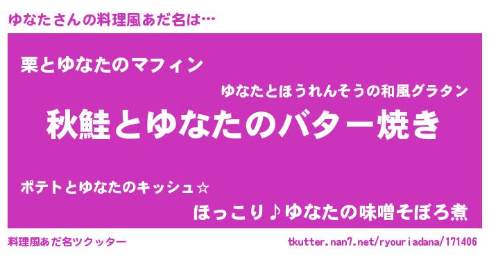 | ヘコむあだ名 | 『ゆなた(苦笑)』『ゆなもー』『豆乳』 |