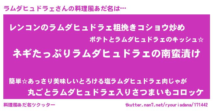 | 胡散臭い通販商品みたいなあだ名 | 『億万長者になれる水晶球…その名も「ラムダヒュドラェ」』 |