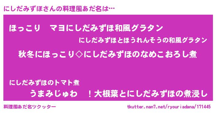 | 意味不明あだ名 | 『住所不定無職にしだみずほ(79歳)』 |