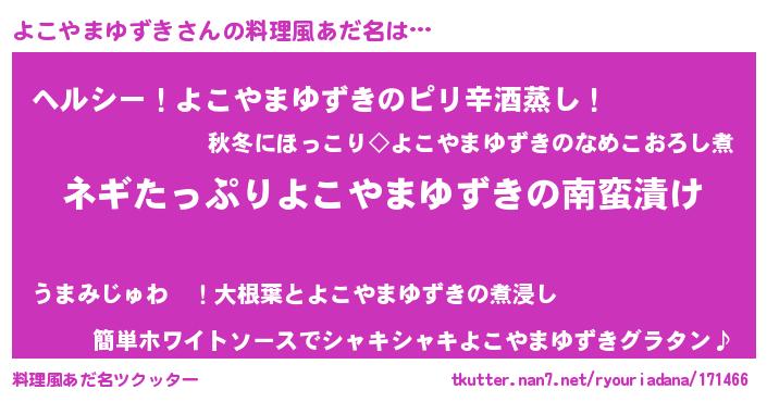 | 恥ずかしいあだ名 | 『プリティーよこやまゆずき』『よこちん』 |
