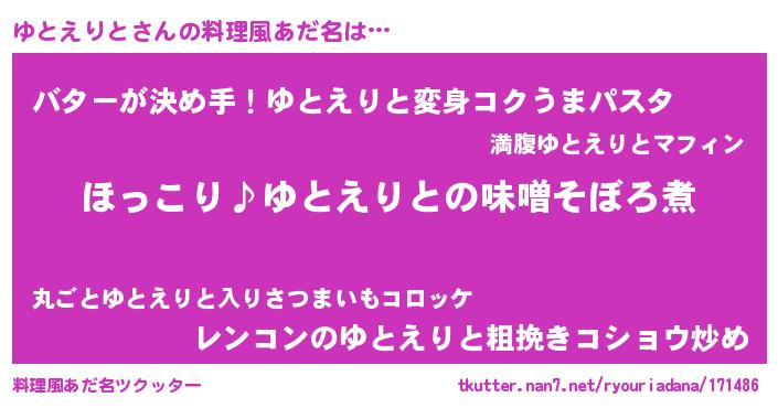 | ヘコむあだ名 | 『ゆともー』『ゆとえりと(震え声)』 |