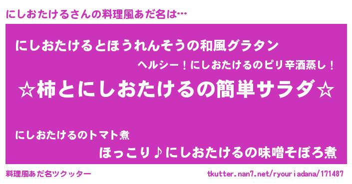| ヘコむあだ名 | 『にしにー』『にしおたける(小並感)』 |