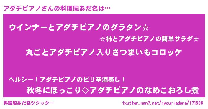 | 意味不明あだ名 | 『住所不定無職アダチピアノ(11歳)』 |