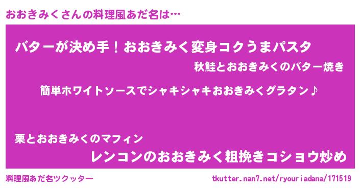 | 胡散臭い通販商品みたいなあだ名 | 『全米が絶賛したサプリメント…その名も「おおきみく」』 |
