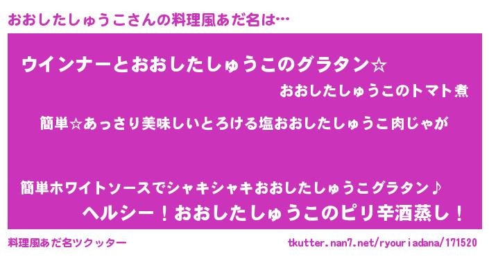 | 意味不明あだ名 | 『永久保存おおしたしゅうこ』 |