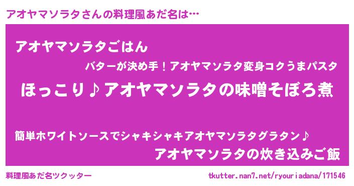 | 欧米人風あだ名 | 『マイケルアオヤマソラタ』 |
