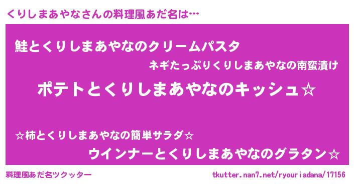 | 女子向けラノベタイトル風あだ名 | 『くりしまあやなの卵を拾いまして』 |