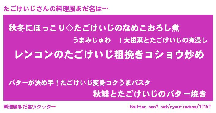 | ヘコむあだ名 | 『たごけいじ(小並感)』『なまこ酢』 |