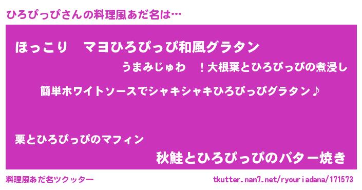 | 男性向けラノベタイトル風あだ名 | 『ひろぴっぴの嫁は女の子じゃないと思った?』 |