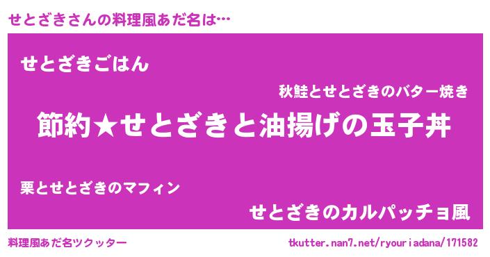 | 男性向けラノベタイトル風あだ名 | 『せとざきの憂鬱』『セトザキスレイヤー』 |