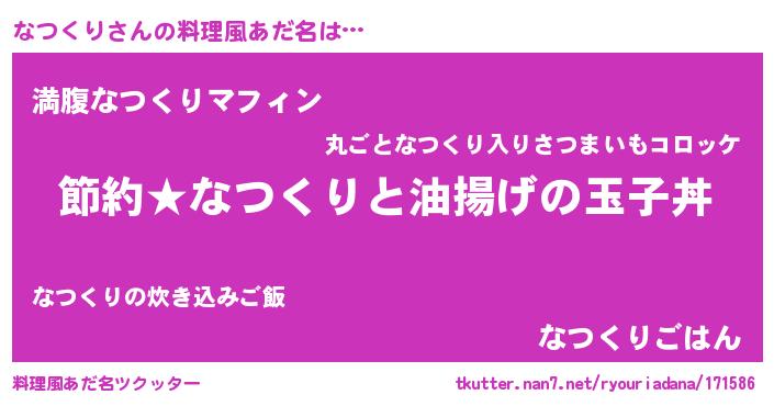 | 男性向けラノベタイトル風あだ名 | 『なつくりの憂鬱』『ナツクリスレイヤー』 |