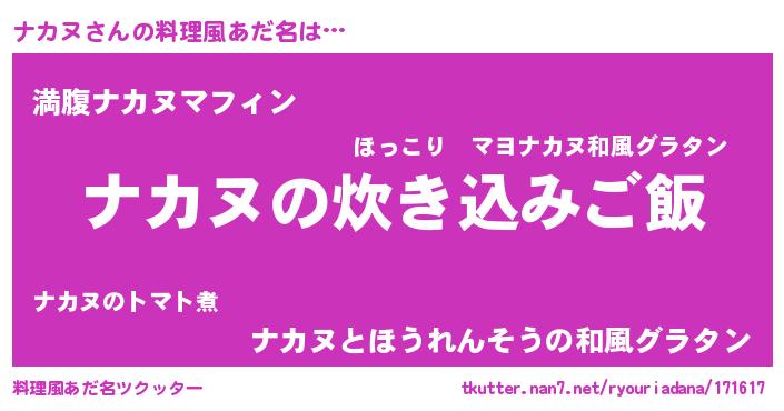 | 胡散臭い通販商品みたいなあだ名 | 『来世でも幸せになれる水素水…その名も「ナカヌ」』 |