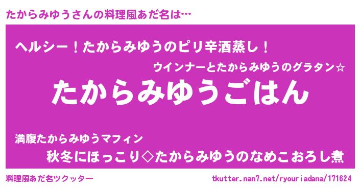 | 恥ずかしいあだ名 | 『タカラミユウデラックス』『たかっちょ』 |